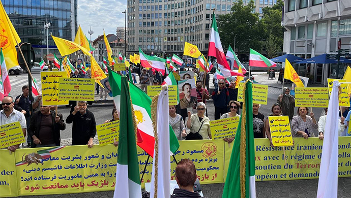 Freedom-loving Iranians hold demonstration to protest a disgraceful deal between Belgium and #Iran's regime to return terrorist diplomat Assadollah Assadi to Tehran#No2Appeasement #DontFreeTerrorists pic.twitter.com/iLVuDJBLGy— People's Mojahedin Organization of Iran (PMOI/MEK) (@Mojahedineng) July 5, 2022