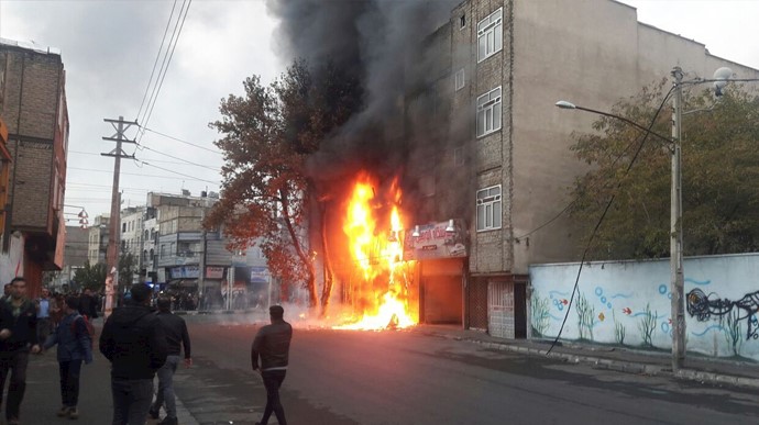 Protesters were demanding regime change and the end of 40 years of dictatorship. Unlike previous uprisings, angry protesters attacked the regime’s key centers, such as governorates, the regime’s seminaries, and state-run banks as centers of corruption and plundering. Protesters also attacked sites of the regime’s oppressive forces, such as police and Revolutionary Guards (IRGC) Basij stations, in a bid to defend themselves from direct fire and a brutal slaughtering carried out by the regime’s forces. Over 1,500 protesters were killed during the protests, according to PMOI/MEK sources inside Iran.