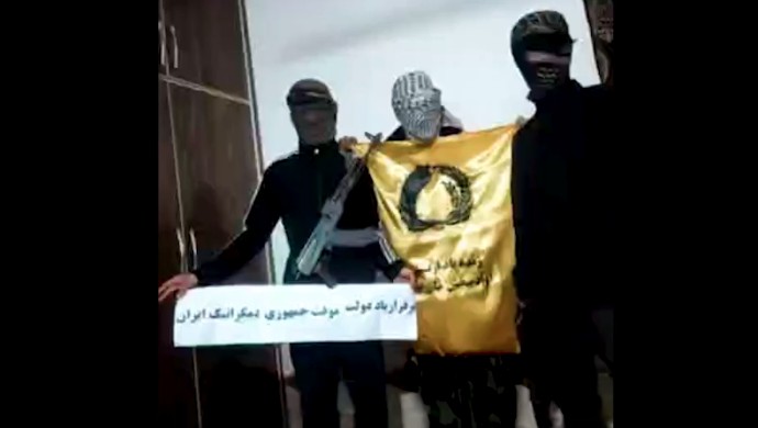 While holding a National Liberation Army flag, they chant: "Viva Rajavi." pic.twitter.com/RvtAWUjTtW