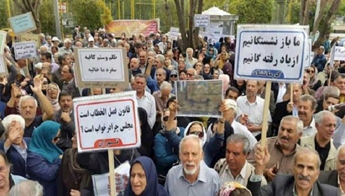 In the past weeks, communities of pensioners have organized demonstrations against poverty and discrimination in Tehran, East Azarbaijan, Isfahan, Alborz, Ilam, Razavi Khorasan, North Khorasan, Khuzestan, Zanjan, Gilan, Lorestan, Central Province, Hamedan, and Yazd. They protest their wages being incomparable to current government employees. According to state laws, the difference between the wages of employees and retirees shouldn’t be higher than 15 percent. But today, the gap stands at above 50 percent.