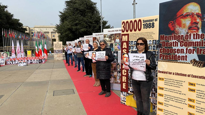 Freedom-loving Iranians and supporters of the Iranian opposition People’s Mojahedin Organization of Iran (PMOI/MEK) in Geneva held an exhibition outside the United Nations European Headquarters in Geneva on Thursday, March 17, calling on the international body to hold the mullahs’ regime ruling Iran accountable for the 1988 massacre of over 30,000 political prisoners, consisting mostly of PMOI/MEK members and supporters.