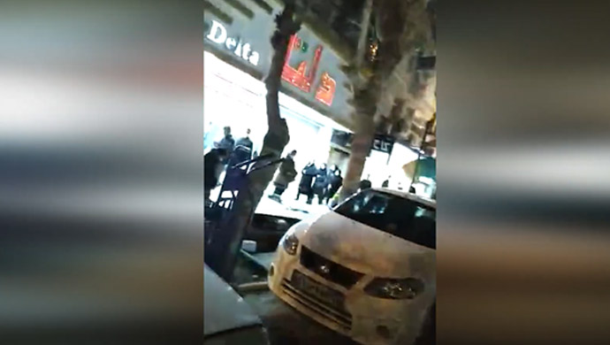 A local authority is telling the people that the bank’s audio system has been breached and asks them to leave the area and not listen to the slogans.