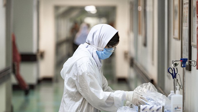 In Kerman province, south-central Iran, physicians and nurses are reporting that Afazalipour and Payambar Azam hospitals are filled with Covid-19 patients and all ICU beds are full. The number of Covid-19 deaths are extremely high and 119 of the medical staff in Afazalipour Hospital have contracted the virus. The hospital is facing a severe shortage in N95 and even ordinary masks for the physicians and nurses. There is also a shortage in ventilators and many other necessary supplies and equipment. The number of patients is so high that other hospitals in Kerman, such as the Imam Hossein and Bahonar facilities, are gradually being filled with Covid-19 patients.