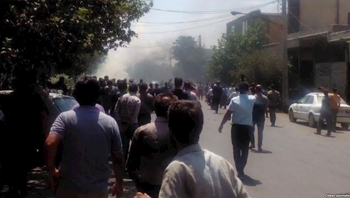 Scores of Revolutionary Guards, anti-riot guards and criminal plainclothes brutally raided the protesters to crush these protests and to prevent their spread and targeted them with exercise bullets that injured one of the young people. Courageous youth confronted the mercenaries by setting fire to a number of their motorcycles.