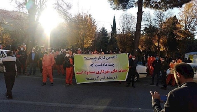 On Sunday, December 13, municipal workers in the city of Ilam, western Iran, held a rally in front of the Ilam courthouse protesting their delayed paychecks.