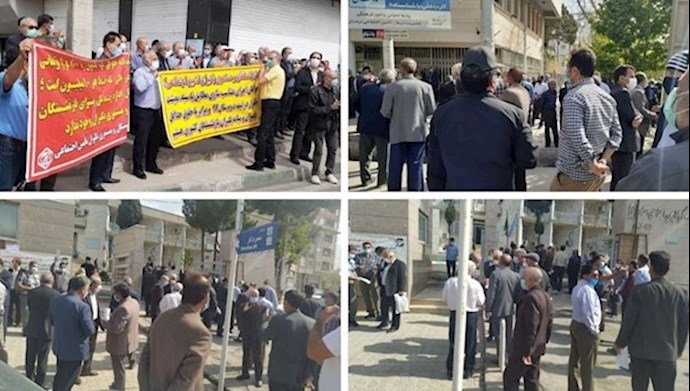 Iran, April 11, 2021—On Sunday, retirees and pensioners of the Social Security Organization in Iran took to the streets again and held protest rallies across Iran. Protests took place in more than a dozen cities, including Tehran, Karaj, Khorram Abad, Ilam, Behshahr, Tabriz, Noshahr, Zanjan, Shiraz, Ahvaz, Isfahan, Neyshabur, Qazvin, Arak, Kermanshah, Bojnurd, Rasht, Shushtar, Mashhad, and Shush.