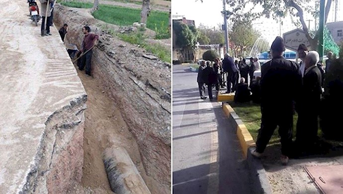 Iran, April 20, 2019 – A group of farmers from the town of Khorasgan, east of the central city of Isfahan, rallied on Friday, protesting the local government’s new pipeline construction project. The regime’s steel company is installing new pipelines to transfer water from a local lake.