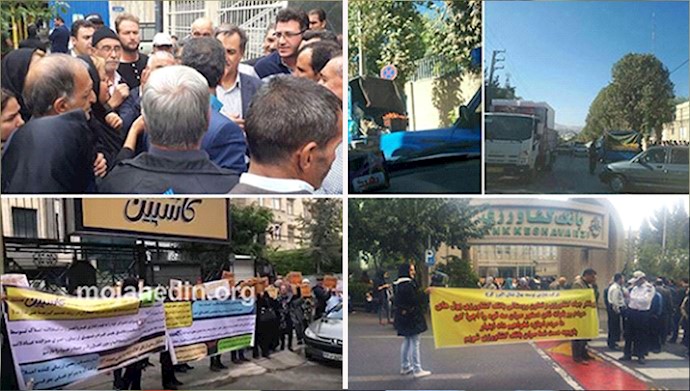 Iran, Oct. 31, 2018 – As reports of continuing protests and strikes arrive from across Iran, clients of the Caspian credit firm, associated to the regime’s Revolutionary Guards (IRGC), rallied outside this institution’s main office building in Tehran and held a protest gathering on Monday morning.