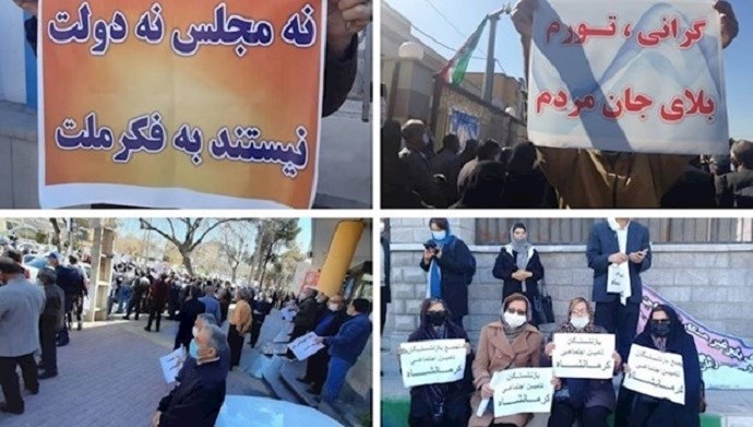 Iran, February 14, 2021—On Sunday, pensioners and welfare recipients held protest rallies in several cities to reiterate their demands from the regime. In the past years, the pensioners have been regularly protesting low wages and the government’s refusal to adjust their pensions based on the devaluation of the rial and the rising inflation rate.