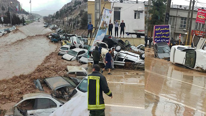 Today, heavy rain and strong winds have caused massive floods in most Iranian southern and western provinces. In Shiraz, part of the city was flooded, including the Ghoran Gate and the Vakil Bazaar, located in the city's historic center, causing many casualties. As the regime advances the figure of 17 killed, it is estimated that the actual number of victims is much larger and increases every hour. The power of the torrents was so much that hundreds of vehicles were washed away.