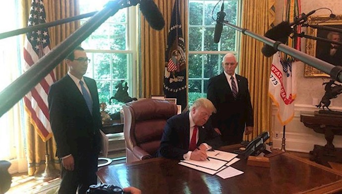 Iran, June 25, 2019 – US President Donald Trump on Monday signed an executive order imposing fresh sanctions against the clerical regime ruling Iran. These sanctions, described as “hard hitting” by Trump, are intended against the mullahs’ regime Supreme Leader Ali Khamenei his assets and his financial system.