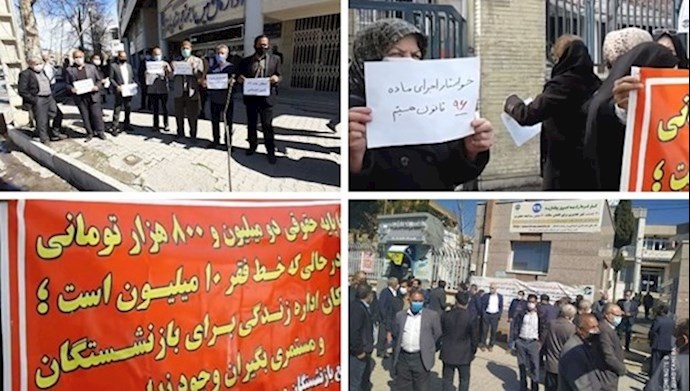 Iran, March 14, 2021—Retirees and pensioners of the Social Security Organization in Iran held protest rallies across the country on Sunday demanding higher pensions as inflation and prices of basic goods continue to escalate. The cities of Tehran, Karaj, Isfahan, Tabriz, Ahvaz, Rasht, Khorramabad, Arak, Kermanshah and others witnessed such rallies as regime officials refuse to provide any answers. The protesters were also complaining that even their mere pensions are often delayed for several months.