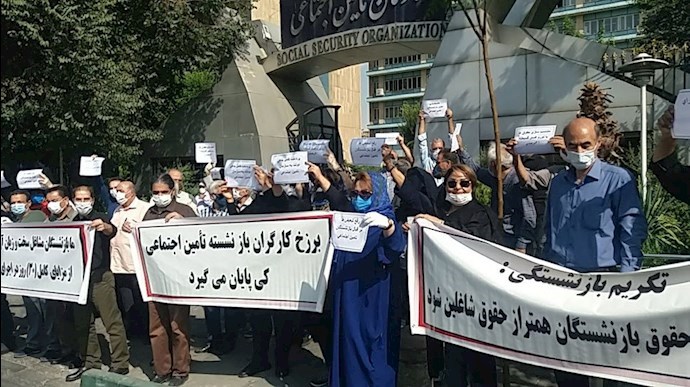 Retirees rally outside the regime's Social Security Organization building seeking answers to their demands. Similar protest gatherings were held in the cities of Mashhad, Ahvaz, Rasht and Arak.#IranProtests pic.twitter.com/rN1FY5M3u0— People's Mojahedin Organization of Iran (PMOI/MEK) (@Mojahedineng) September 5, 2020