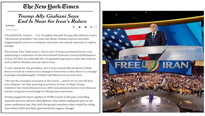 The former New York mayor who is now Trump's personal lawyer was addressing a conference of the Paris-based National Council of Resistance of Iran (NCRI), an umbrella bloc of groups of exiled Iranians opposed to the Islamic Republic.