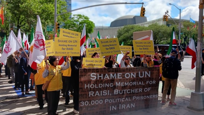 In a powerful display of opposition, supporters of the Iranian Resistance gathered in front of the United Nations headquarters in New York City on May 30, 2024, to protest a memorial ceremony for Ebrahim Raisi, the former president of Iran’s regime.