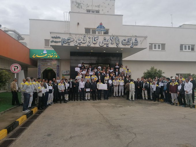 A similar protest was held by official workers of the Cheshme Khosh oil and gas company. Activists in other cities are also reporting official employees of the country’s oil and gas sites, and refineries are protesting for similar demands. At least 11 such protest rallies have been reported as of the time of this report’s publication, including workers of the Sarkhas oil and gas sites in Abadan, southwest Iran, going on strike today.