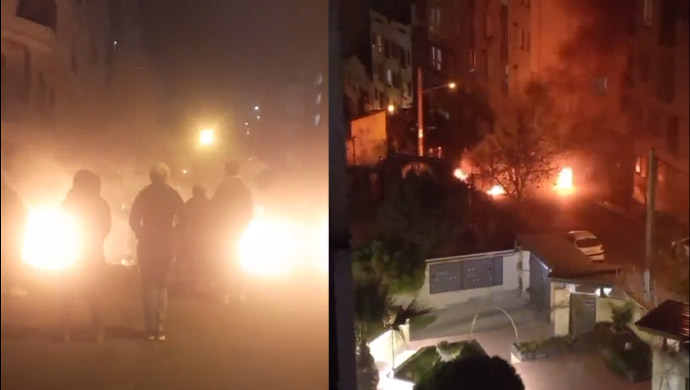 On Tuesday night, people held protest rallies in several cities. In Tehran, there were demonstrations at Revolution Square, Ekbatan district, Sadeghiyeh district, Parkway, and Tehranpars. Protesters chanted slogans against the regime. In Salsabil, protesters blocked a road and chanted, “This is the year Khamenei will be overthrown!” In Sadeghiyeh, protesters were chanting, “Khamenei is a murderer, his rule is illegitimate!”