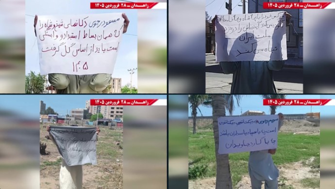 Recently, the regime rushed to execute 13 individuals—including six PMOI members—to protect its crumbling power from potential post-war uprisings. By executing these political prisoners amid an external war, the regime effectively acknowledges that its true enemy, and the force driving its downfall, is the network of Resistance Units and the Liberation Army. The activists in Zahedan displayed placards demanding that a “halt to executions in Iran, as a demand of the entire Iranian population, should be incorporated into any international agreement.”