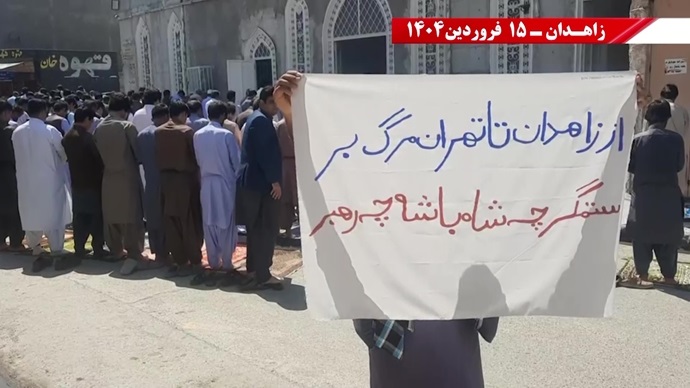 They also held banners that read, “From Zahedan to Tehran, Death to the Oppressor — Be It Shah or Khamenei”