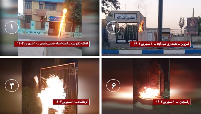 • Setting fire to a banner of Khamenei in Kerman.