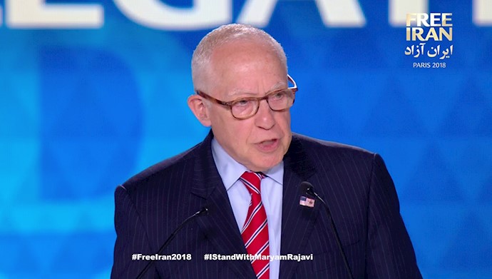 We have heard and we will hear more from speakers for the first time in the eight years since I've been coming to this event. We have heard and we will hear that finally the stars seem to be aligned to accomplish what we all want to accomplish which is the downfall of the Mullahs regime. …and Even as we hear that the economic rot in Tehran and the political rot in Tehran finally matches the moral rot that has always been at the core of the of the mullahs regime. And as we pause to thank Mrs. Rajavi who has devoted decades of her life to bringing this about and the people who died and the people who are mutilated to help bring it about. And the residents of Camp Ashraf who suffered tremendously and the Albanians who welcomed them gallantly. We all are aware and you are aware and your presence here shows you're aware that there is nothing inevitable in human affairs. We hope that the mullahs will topple but it's going to take more effort. But you are here to show that that effort is going to be forthcoming and I promise you ….I Promise you in my own behalf and on behalf of the others in the American delegation that we know that our efforts will not stop either until the day comes when we can greet each other in a peaceful and free Iran. Thank you very much.