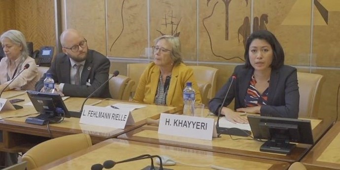 Massoumeh Joushaghani, a former political prisoner in Iran at the UN discussing human rights conditions in Iran – Palais des Nations, UN – September 20, 2019
