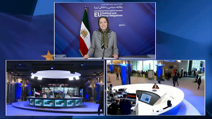 In her speech, Mrs. Rajavi also made policy recommendations. “On behalf of the Iranian people’s Resistance, I propose a policy with three elements: Human rights for the people of Iran, comprehensive embargo of the religious dictatorship, and recognition of the Iranian people's Resistance for freedom and democracy,” she said. “I urge the Parliament of Europe to urge the Council of Ministers to adopt a binding legislation, to expel the Iranian regime’s agents from the European soil, shut down the regime’s embassies in all EU member states, and designate the IRGC and its proxies in Iraq, Syria, Lebanon, Yemen, and other countries as terrorist groups.”