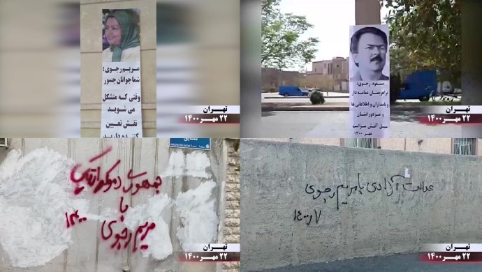 Iran, October 16, 2021—In recent days, the network of the Iranian opposition inside Iran carried out anti-regime activities across the country. The internal network of the People’s Mojahedin Organization of Iran (PMOI/MEK), known as the Resistance Units, has organized a vast campaign in recent days against the mullahs’ dictatorship ruling Iran.