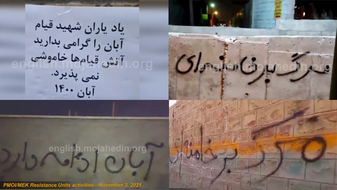 Iran, November 7, 2021—As the second anniversary of the November 2019 protests nears, Resistance Units across Iran are commemorating the nationwide uprising and pledging to continue the path of the martyrs who laid down their lives for freedom in Iran.