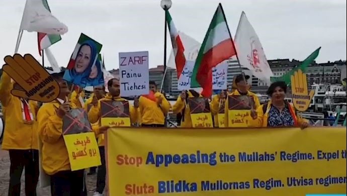 Iran, August, 21, 2019–On Tuesday, August 21, supporters of the People’s Mojahedin Organization of Iran (PMOI/MEK) in Finland held a protest rally against the presence of the Iranian regime’s sanctioned foreign minister Javad Zarif who is now begging Europe for a relief from the U.S. pressure.
