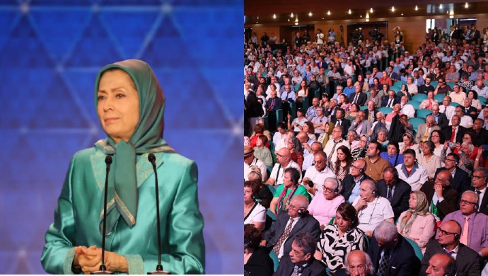In her keynote address, Maryam Rajavi, the president-elect of the National Council of Resistance of Iran (NCRI), laid out a comprehensive vision for a future democratic republic. She began by honoring the recently executed PMOI members, Behrouz Ehsani and Mehdi Hassani, describing them as heroes who “remained proud and unwavering, honoring their pledge to God and to the people.”