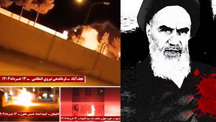 On the anniversary of the death of Iranian regime founder Ruhollah Khomeini, the issuer of the religious decree (fatwa) for the massacre of political prisoners in 1988, rebellious youth launched 25 operations, carrying out fiery attacks against the centers of oppression and crime and symbols of Khomeini and Ali Khamenei, the current Supreme Leader of the regime.